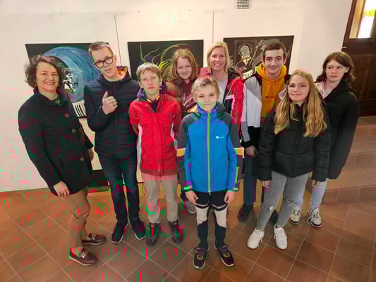 Die Ausstellung „Bunte Vielfalt“ im Kunsthaus ließen sich einige Schülerinnen und Schüler der ASO Laa an der Thaya mit ihrer Frau Direktorin Marlene Graf und Lehrerin Barbara Zeinler nach den